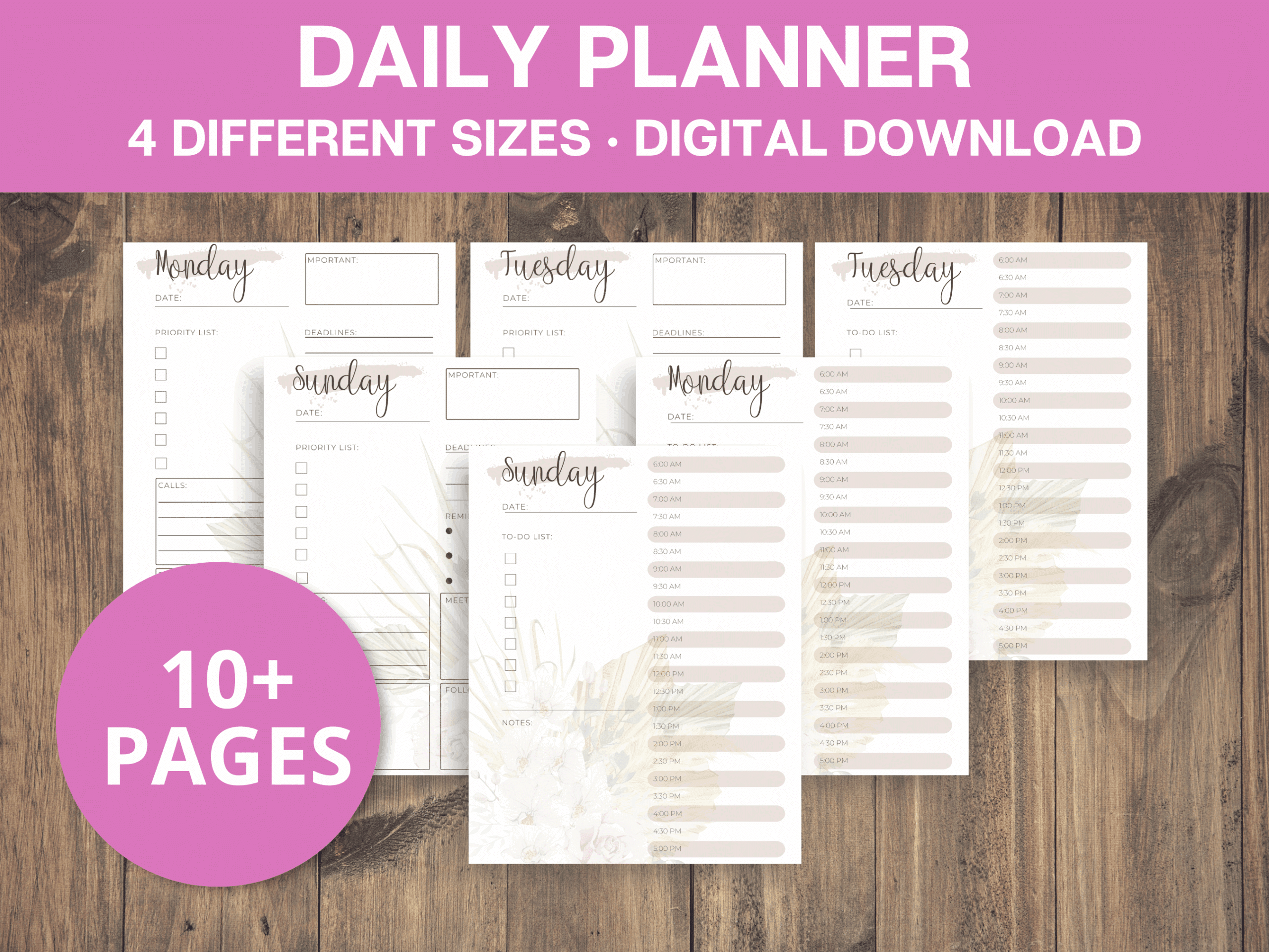 Undated Printable Daily Planner